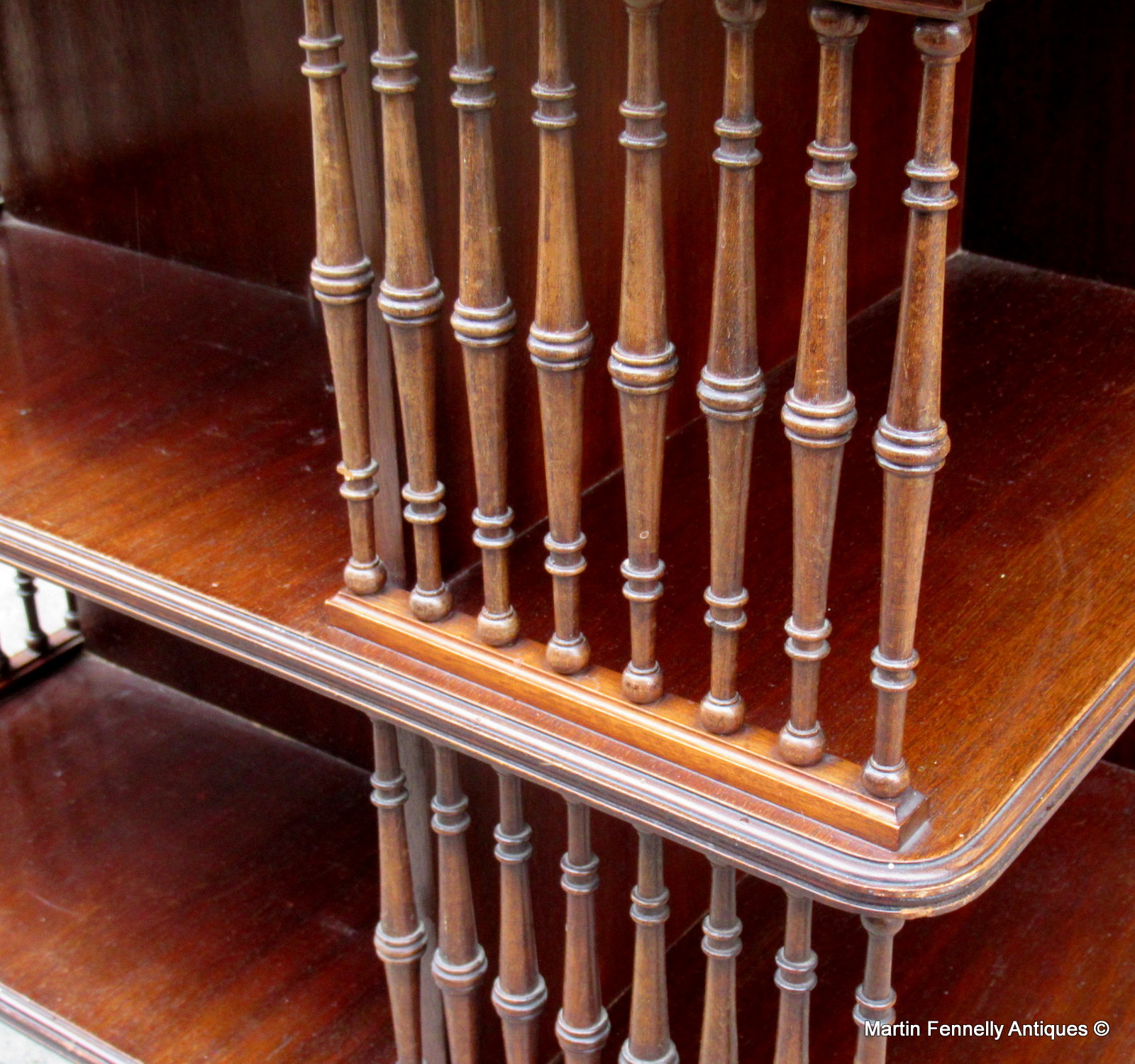 This is a great quality Revolving Bookcase maunfactured by the famed furniture makers, Howard and Sons of Berners Street, London. This case dates to Circa 1890 and is in great condition. The flame gaine Mahogany make for a vivid patina and has the original ivory makers labed on the base. The piece has the original castors and I was very surprised to find one here in Ireland.