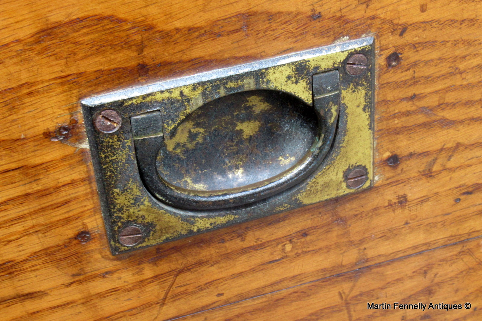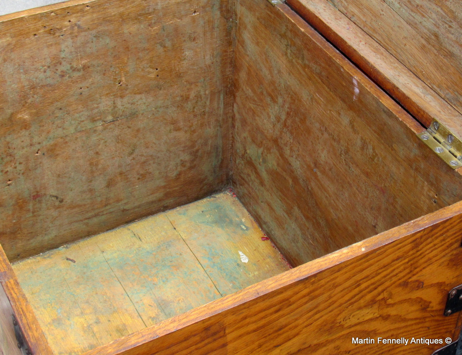 This is a beautiful English Hand Painted Mahogany Box Dating to the 1890’s and beautifully painted with The Royal Coat of Arms – House of Wondsor. The Hand Painted front image is quite detailed and in lovely condition. The Box is bass bound and has the original handles. This is a striking little trunk and would make for quite the talking point in your home and useful for storage too.