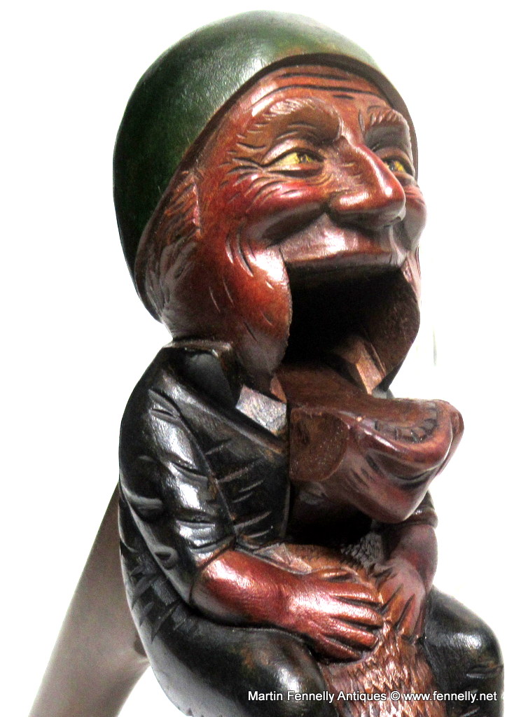 This is a large and wonderfully carved Nut Cracker dating to Circa 1890 and in excellent condition. It was carved in the Black Forest area of Germany and the detail is beautiful. Nut Crackers are very collectable and this one which is of a very large size and deep rich patina will be a sought after item for the avid collector.