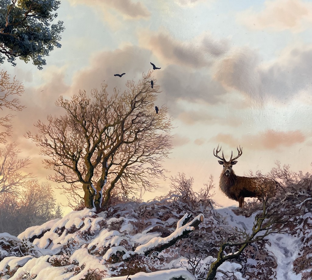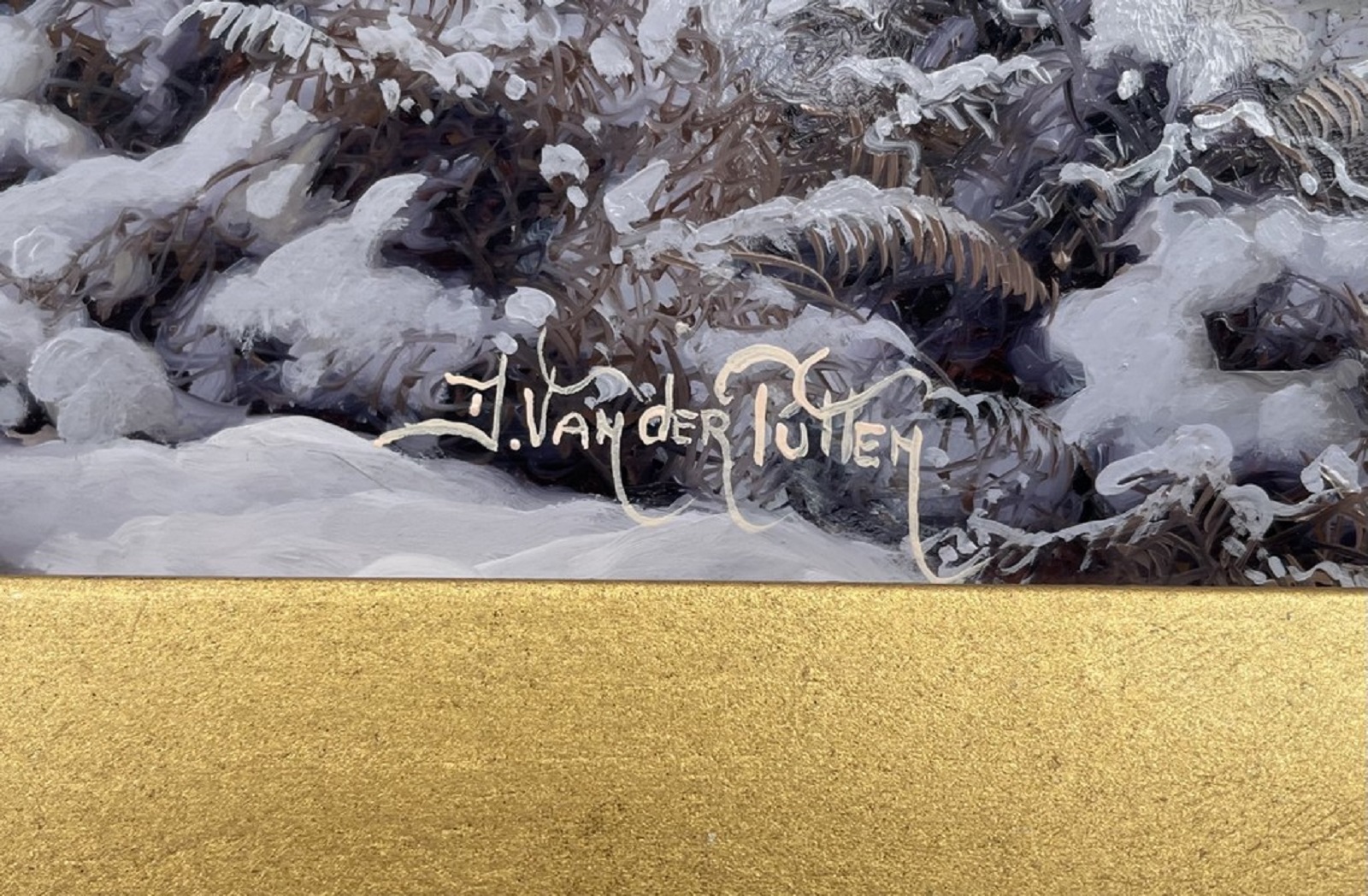 This is a Snow Scene painted by Daniel Van der Putten of Ireland and is a wonderful serene rural Winter scene in Kerry near Killarney at the world famous national park. Van der Putten is Dutch born but resides and paints in the UK. Exhibited only in the finest Galleries, it is a great honour to have this rare painting by Van der Putten in my Gallery. This magnificent Snow Scene of “Winter in Killarney National Park” Kerry in the South West of Ireland shows how Van der Putten’s majestic brush work captures with consummate finesse this peaceful rural winter scene in the stunning Irish Countryside. This is a very rare Painting by Van der Putten, the Famed Dutch Artist that until now mainly painted English Scenes. The Artist’s majestic brush work captures with consummate finesse the magical colours of this rural Winter scene and his shadow and light work is superb. Signed lower left Daniel Van der Putten and titled at back. Condition: Perfect showroom condition with no imperfections.