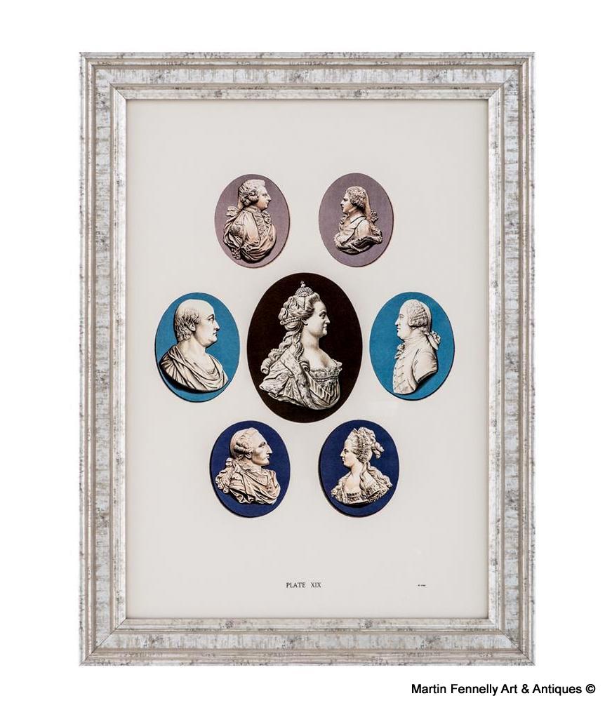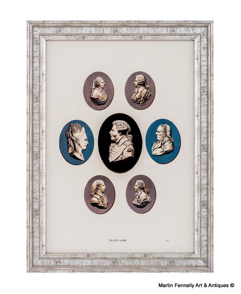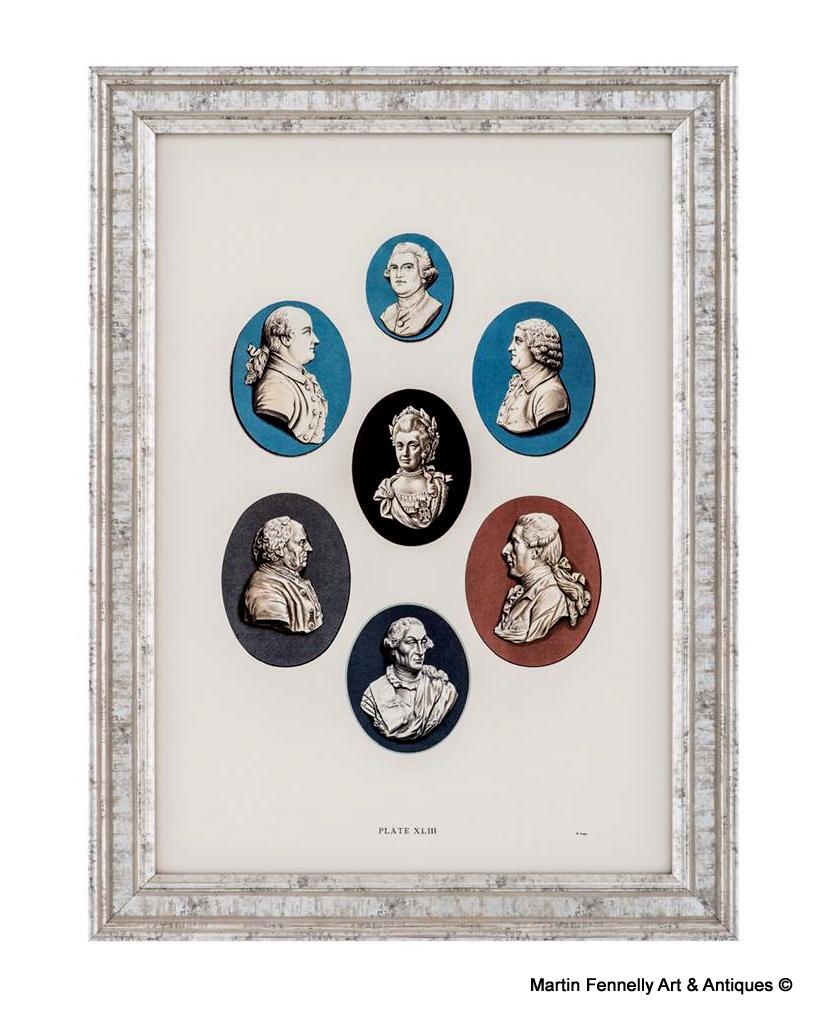 These are a Stunning Set of 4 Large Framed Hand coloured Engravings of Wedgewood Carvings from 1760. They are really beautiful and would make a wonderful collection in any room. They are in great condition and the colours are vivid. They are well framed in an Ivory finish and would add a touch of Classical elegance to any location. Height 22.75" (57.5cm) Width 16.5" (42.5cm)