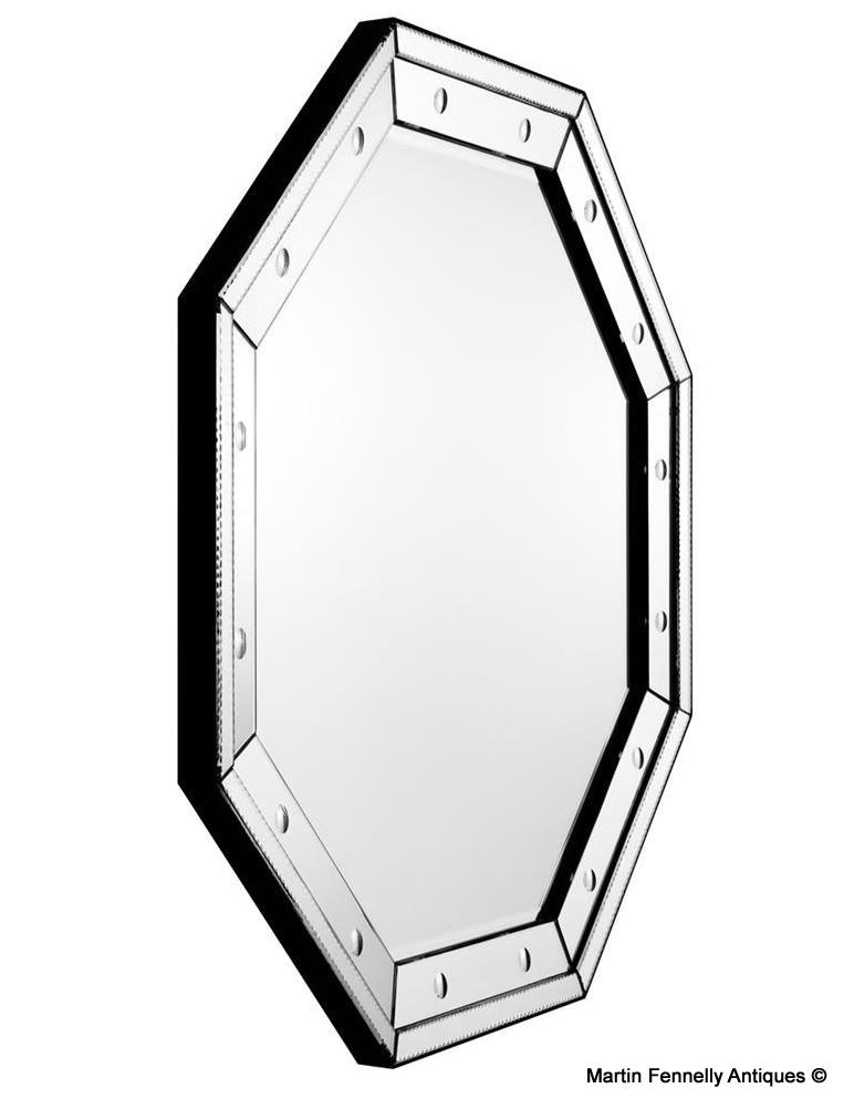 Part of my Mid Century/Modern range this Dalle Octagon shaped bevelled luxury Mirror will brng restrained opulence to your interior space as it elegantly reflects yout interior design. The octagonal shaped mirror features an eclectic bevelled effect for added dimension. With indented circular disc detailing for a gentle contrast. Stylish Mirror this.