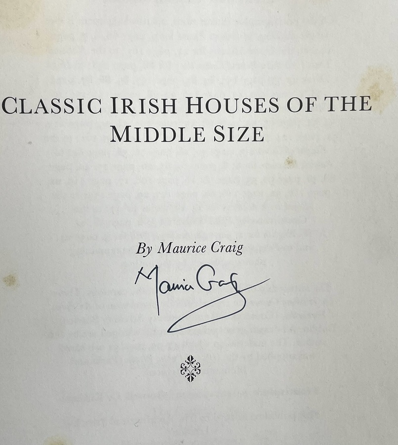 M066 Classic Irish Houses of the Middle Size – Maurice Craig – Signed – Hard Back