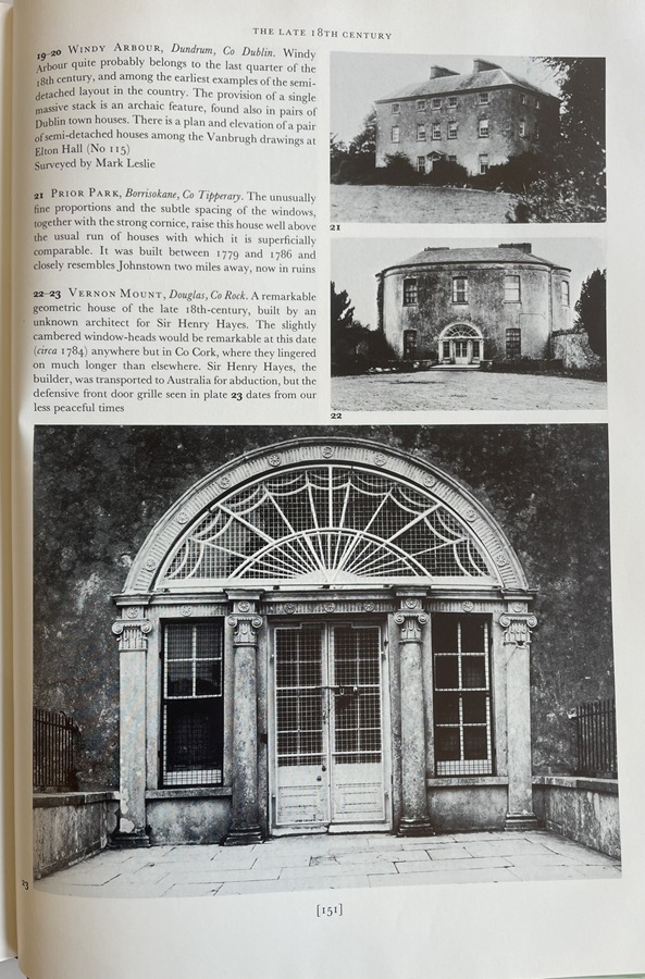 Classic Irish Houses of The Middle Size – Maurice Craig – A record of the 17th-19th-century middle-sized houses occupied by the the middle class/minor gentry. The style of these homes bridged the gap between indigenous building and imported English and other European influences. Incorporating features of all, they illustrate a continuity in building practice linking the great with the small and the remoter centuries with the recent past. Arranged by architectural features and with a section on nomenclature. A second section, arranged chronologically, illustrates the buildings themselves. An excellent visual and historic reference about houses both vanished and still standing. New York: Architectural Book Publishing Co., 1977 – 170 Pages – Hard Back – Condition Good with some foxing on some pages at start of Book – Signed by Author. Maurice James Waldron Craig (25 October 1919 – 11 May 2011) was an Irish architectural historian, the author of several books on the architectural heritage of Ireland and other subjects, and a conservation activist.