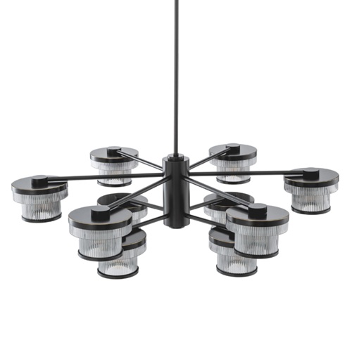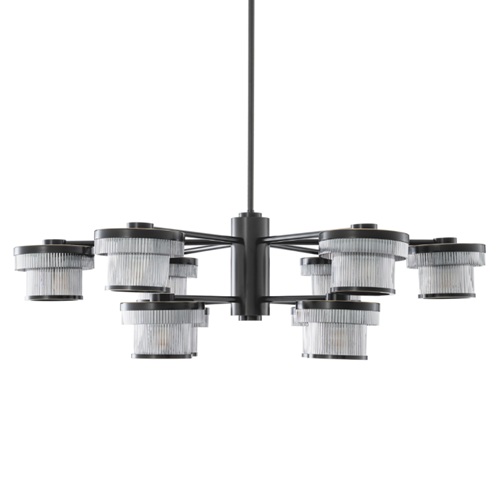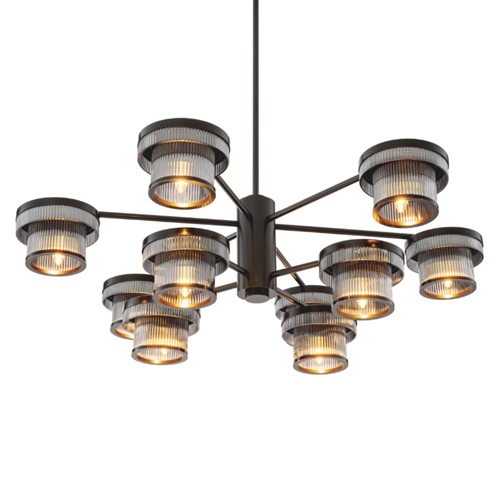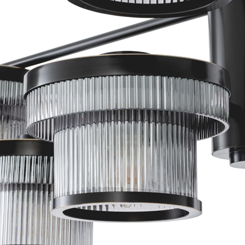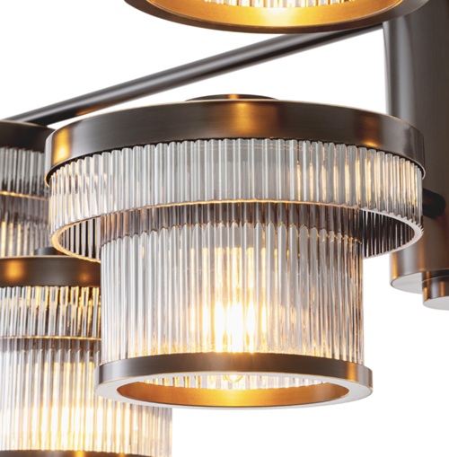 The Andromeda Chandelier is an exploration of celestial form through the language of modern design. Composed of a precise radial framework in bronze highlight finish, it suspends a constellation of cylindrical glass shades that encircle its central axis in perfect symmetry. Each diffuser, delicately fluted in lightly smoked glass, captures and refracts the light, evoking the quiet shimmer of a distant galaxy. Available as a chandelier and wall lamp, Andromeda’s composition recalls the rational geometry of mid-century modernism while echoing the spatial harmony of astronomical instruments from the early twentieth century. The warm metallic structure contrasts beautifully with the cool transparency of the ribbed glass, striking a balance between engineering and elegance. Both architectural and atmospheric, Andromeda transforms light into orbiting rhythm, an illuminated homage to balance, movement, and celestial wonder. In any interior, Andromeda serves as a sculptural centerpiece that bridges art, science, and timeless design.