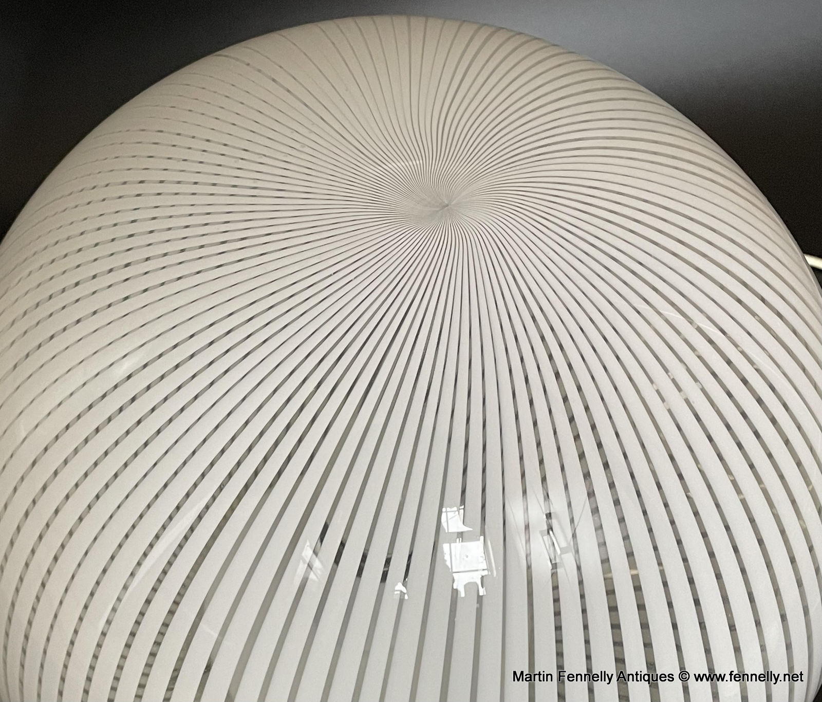 These are a wonderful Pair of Italian Spiral Design 1960’s Globe Table Lamps. They are in excellent condition and draw many admiring glances from visitors to my gallery. Although they are not stamped I have had opinion on them from people within the Antique business and we believe that they are by Murano of Italy.