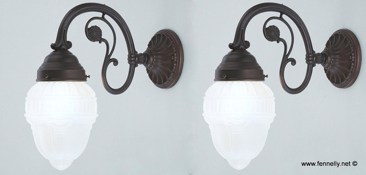 These are a beautiful Pair of Bronze Patinated and Opaline shade Wall bracket Lights. They are of a large size with Art Nouveau design features. Please note the dimensions.