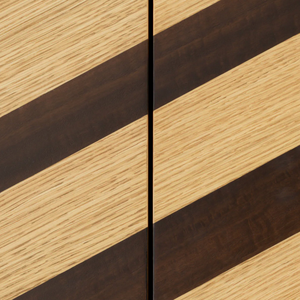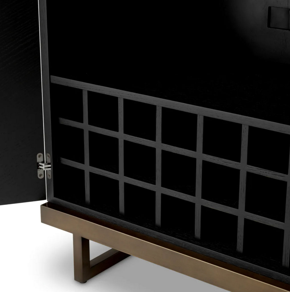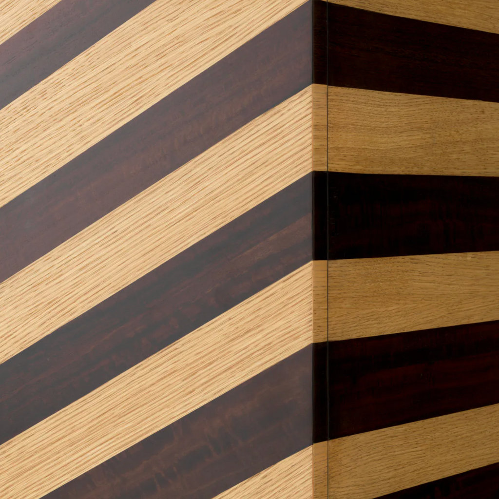 The Wexford Bar Cabinet – Combining the warm embrace of natural oak veneer with the subtle richness of eucalyptus veneer, the Bar Cabinet Wexford showcases a harmonious blend of textures and tones. Behind its elegant doors, the interior offers dedicated space for up to 21 bottles, with plenty of room for glasses and a hanging rack for stemware bringing together smart design and timeless style for effortless entertaining. Eichholtz Design.